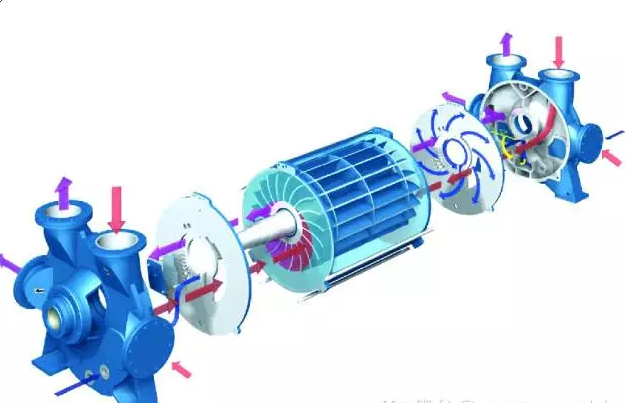 水環(huán)輪式自吸泵是將水環(huán)輪和水泵葉輪組合在一個殼體內(nèi),借助水環(huán)輪將氣體排出,實現(xiàn)自吸。當泵正常工作后,可通過閥截斷水環(huán)輪和水泵葉輪的通道,并且放掉水環(huán)輪內(nèi)的液體。